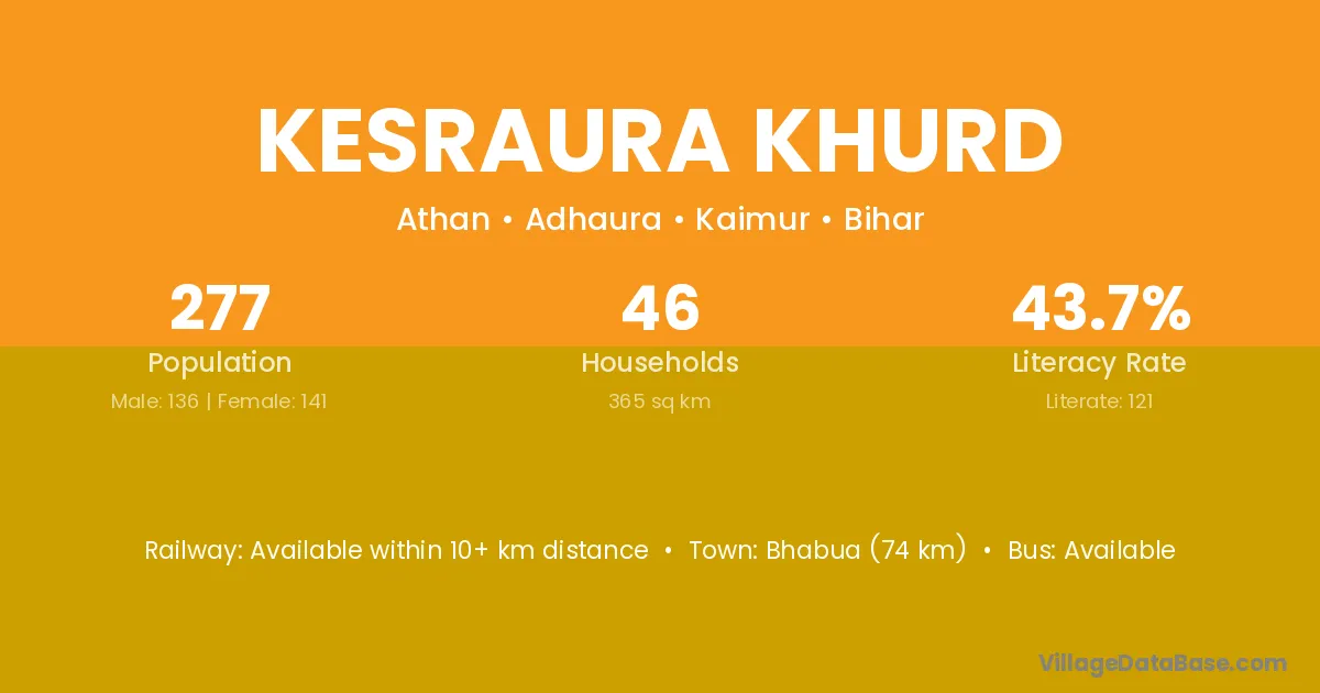 Kesraura Khurd village has a total population of 277 people, of which 136 are males and 141 are females.