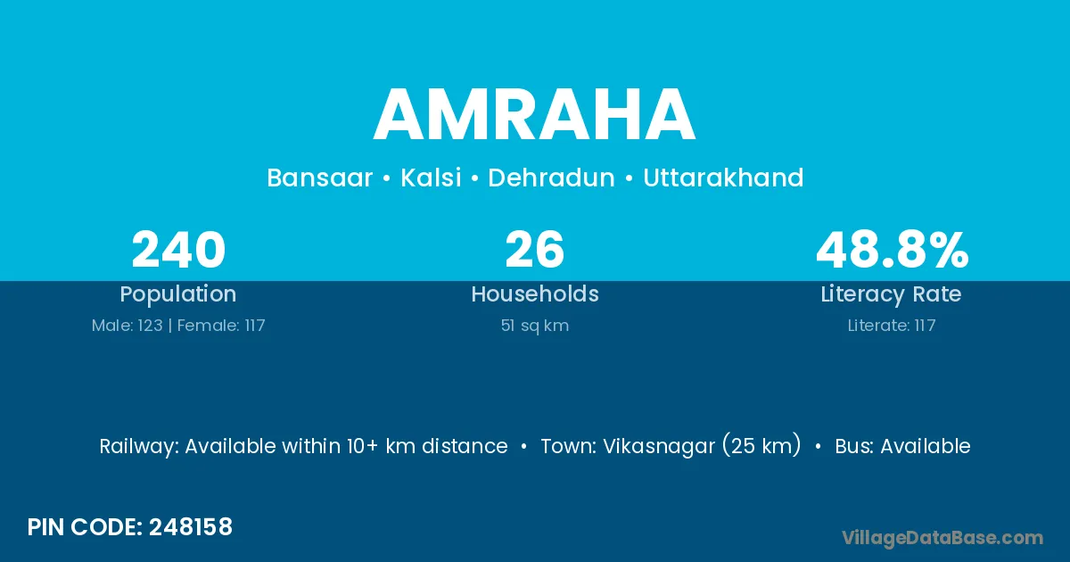 Bhabua (23 km) is the nearest town to Amraha village for major economic activities and is located approximately 23 km away.