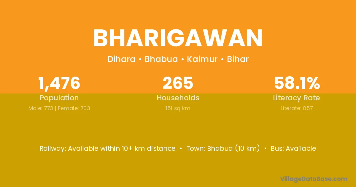 Bhabua (10 km) is the nearest town to Bharigawan village for major economic activities and is located approximately 10 km away.