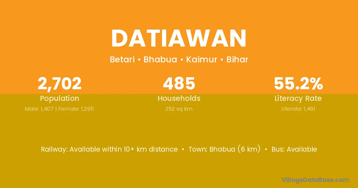 Bhabua (6 km) is the nearest town to Datiawan village for major economic activities and is located approximately 6 km away.