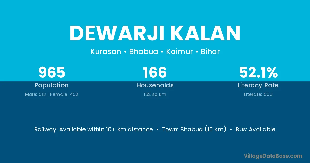 Dewarji Kalan village has a total population of 965 people, of which 513 are males and 452 are females.