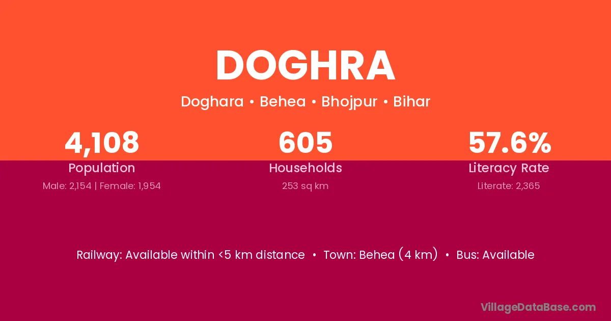 Bhabua (14 km) is the nearest town to Doghra village for major economic activities and is located approximately 14 km away.