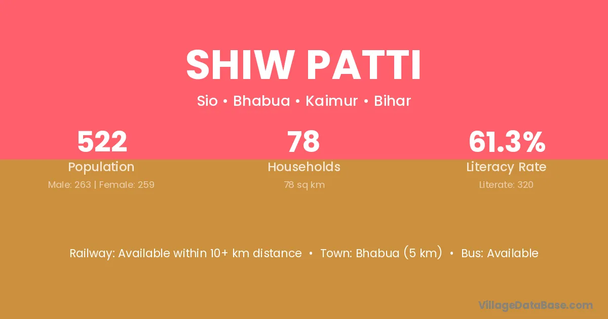 Bhabua (5 km) is the nearest town to Shiw Patti village for major economic activities and is located approximately 5 km away.