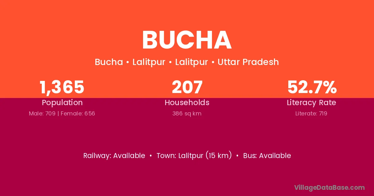 Bhabua (12 km) is the nearest town to Bucha village for major economic activities and is located approximately 12 km away.