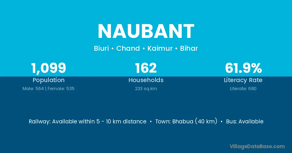 Bhabua (40 km) is the nearest town to Naubant village for major economic activities and is located approximately 40 km away.