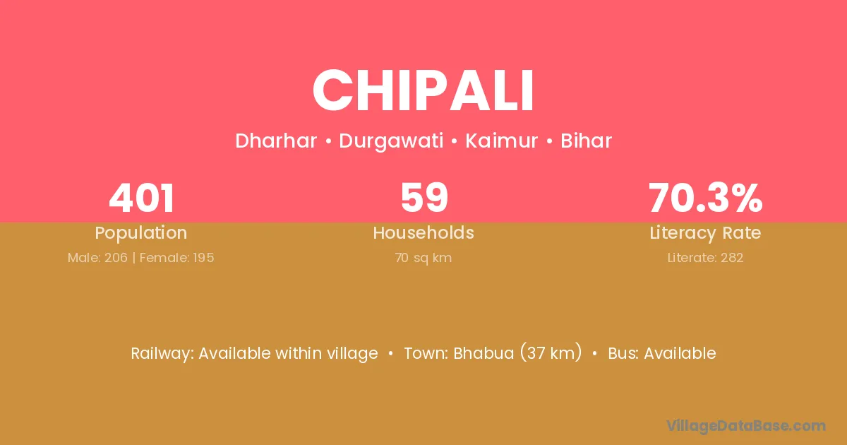 Bhabua (37 km) is the nearest town to Chipali village for major economic activities and is located approximately 37 km away.