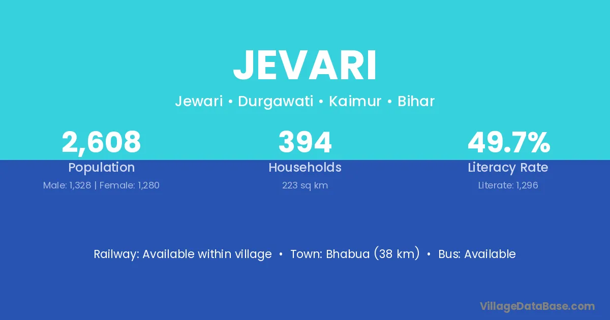 Bhabua (38 km) is the nearest town to Jevari village for major economic activities and is located approximately 38 km away.