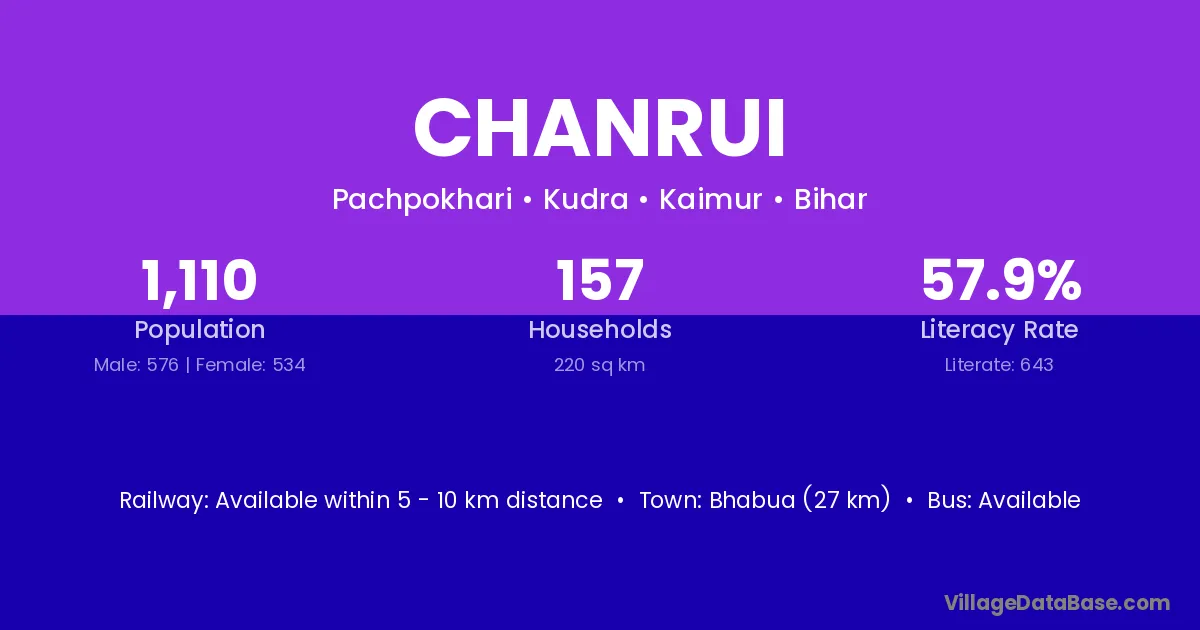 Bhabua (27 km) is the nearest town to Chanrui village for major economic activities and is located approximately 27 km away.
