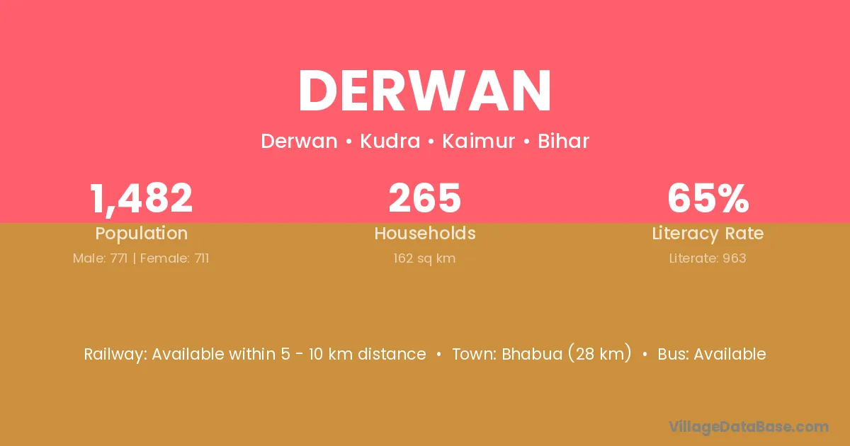 Bhabua (28 km) is the nearest town to Derwan village for major economic activities and is located approximately 28 km away.