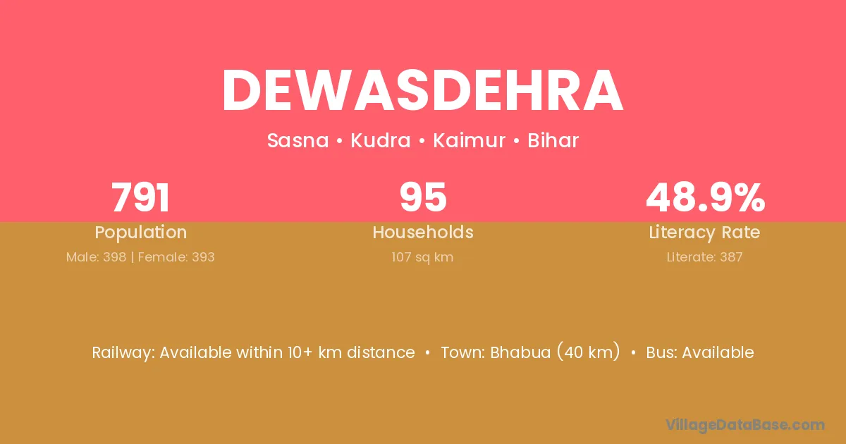 Dewasdehra village has a total population of 791 people, of which 398 are males and 393 are females.