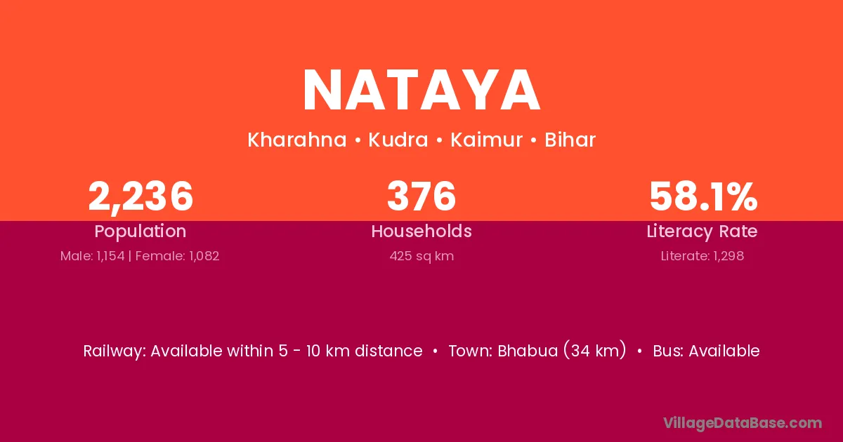 Bhabua (34 km) is the nearest town to Nataya village for major economic activities and is located approximately 34 km away.