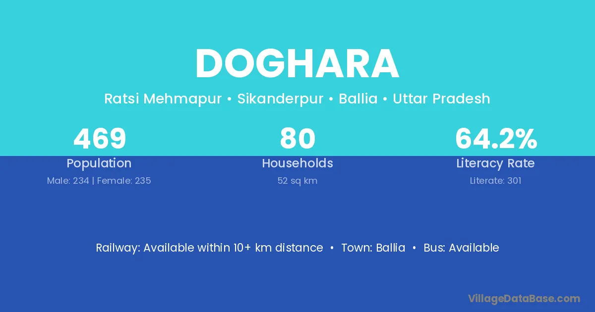 Bhabua (20 km) is the nearest town to Doghara village for major economic activities and is located approximately 20 km away.