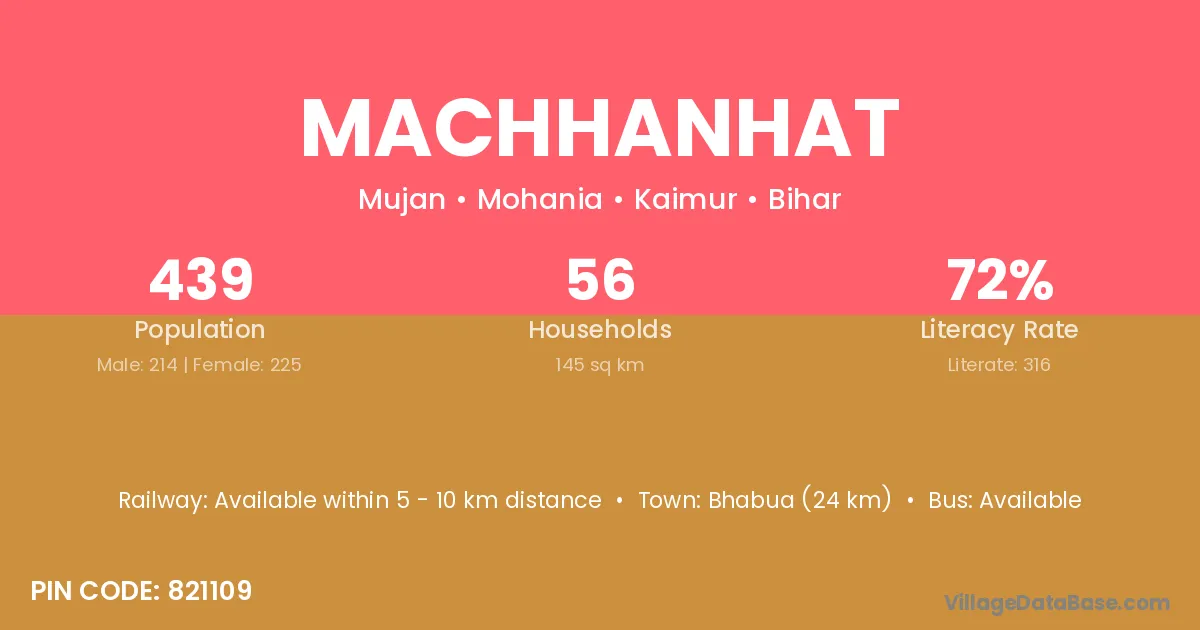 Machhanhat village has a total population of 439 people, of which 214 are males and 225 are females.