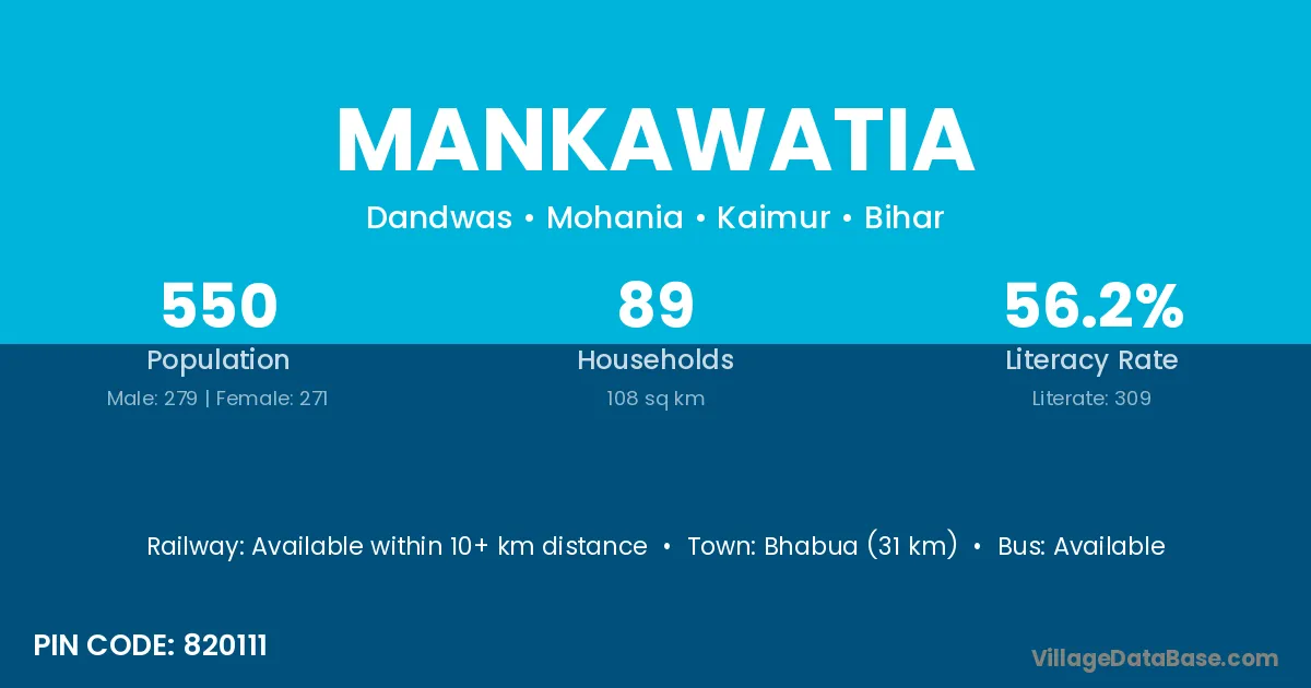 Mankawatia village has a total population of 550 people, of which 279 are males and 271 are females.