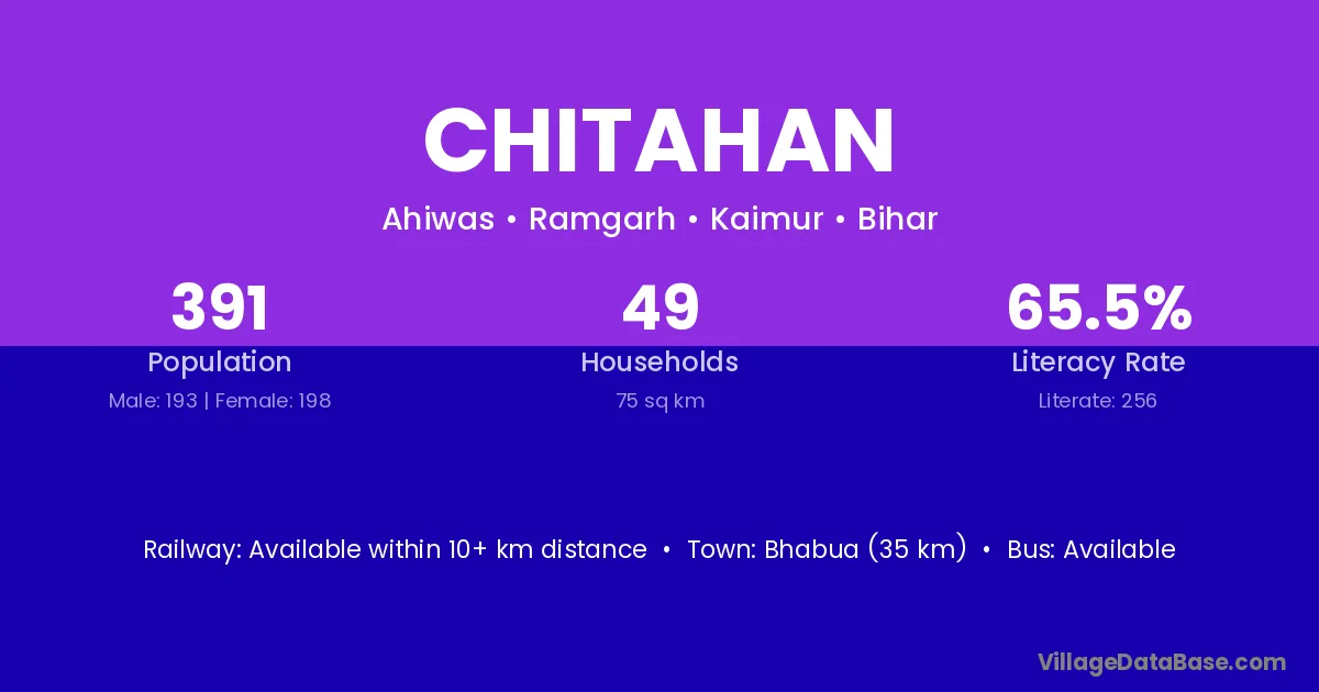 Bhabua (35 km) is the nearest town to Chitahan village for major economic activities and is located approximately 35 km away.