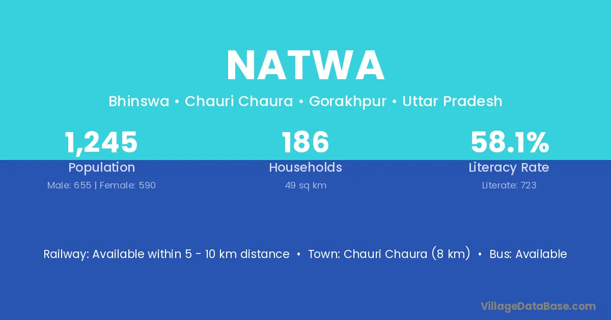 Bhabua (31 km) is the nearest town to Natwa village for major economic activities and is located approximately 31 km away.