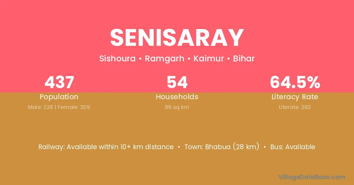 Bhabua (28 km) is the nearest town to Senisaray village for major economic activities and is located approximately 28 km away.