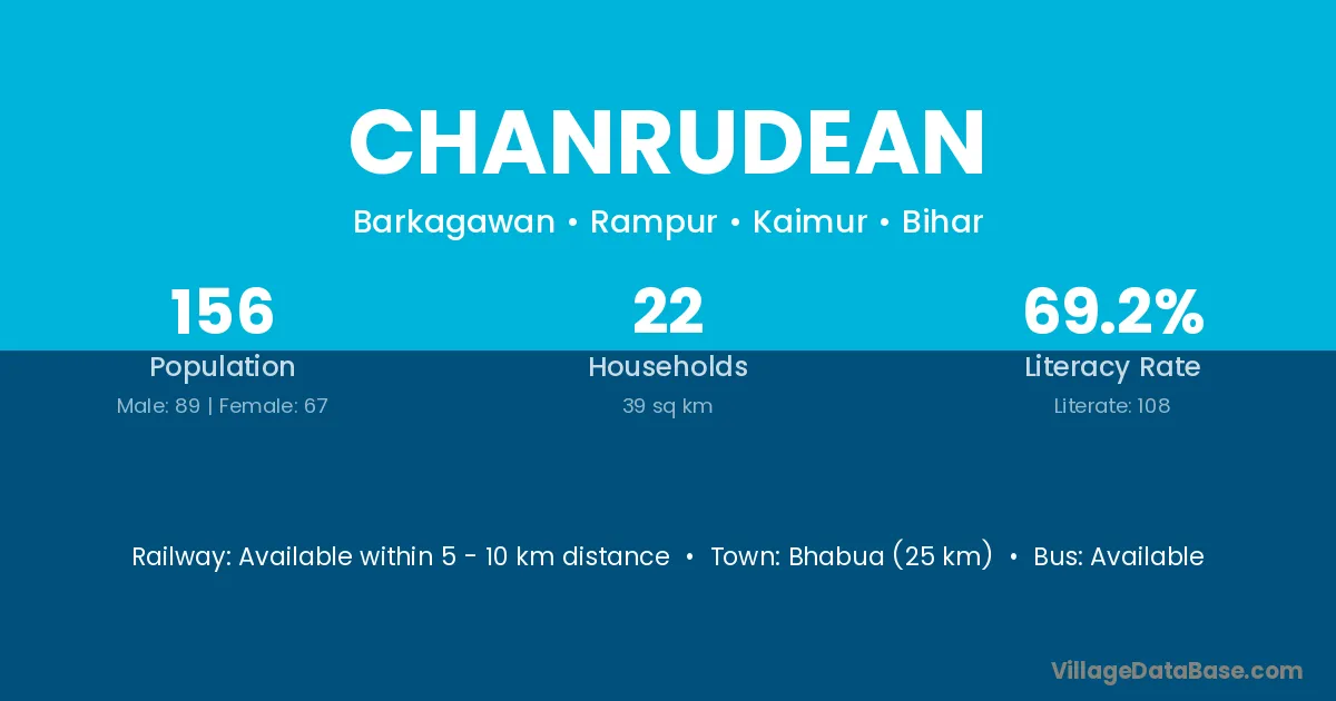 Bhabua (25 km) is the nearest town to Chanrudean village for major economic activities and is located approximately 25 km away.
