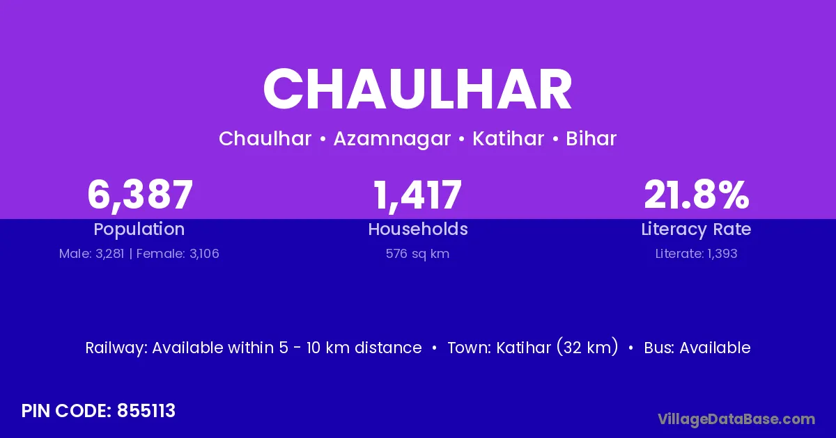 Katihar (32 km) is the nearest town to Chaulhar village for major economic activities and is located approximately 32 km away.
