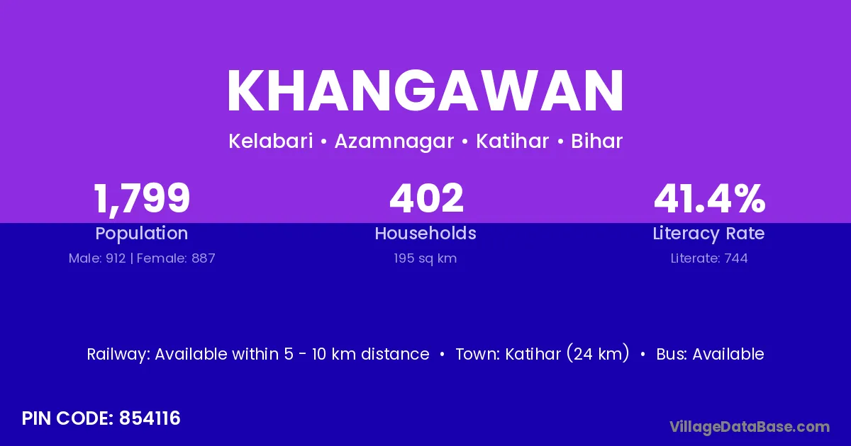 Katihar (24 km) is the nearest town to Khangawan village for major economic activities and is located approximately 24 km away.