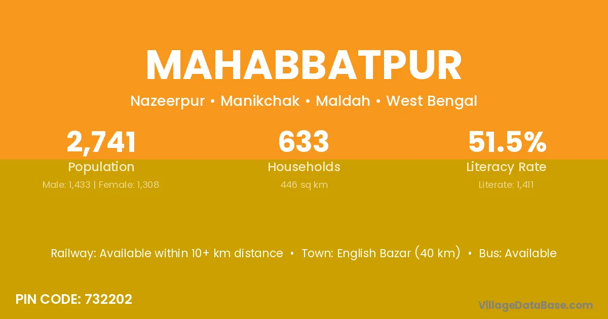 Katihar (50 km) is the nearest town to Mahabbatpur village for major economic activities and is located approximately 50 km away.