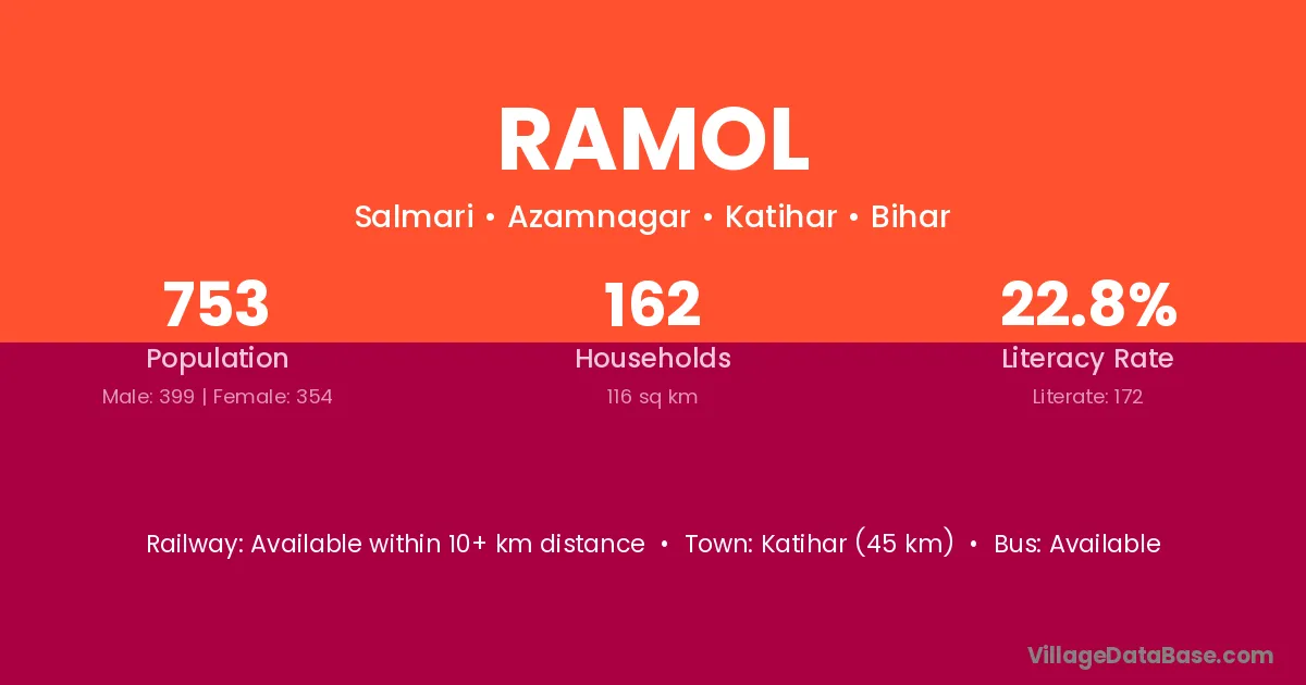 Katihar (45 km) is the nearest town to Ramol village for major economic activities and is located approximately 45 km away.