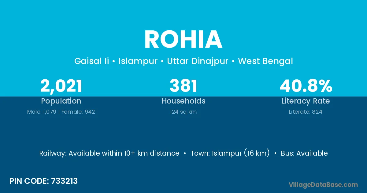 Katihar (27 km) is the nearest town to Rohia village for major economic activities and is located approximately 27 km away.
