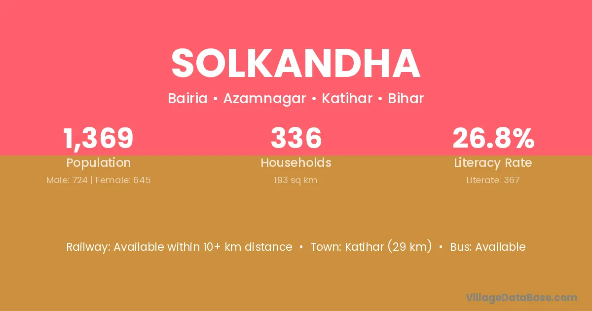 Katihar (29 km) is the nearest town to Solkandha village for major economic activities and is located approximately 29 km away.
