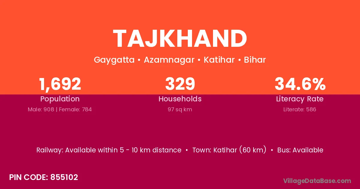 Katihar (60 km) is the nearest town to Tajkhand village for major economic activities and is located approximately 60 km away.