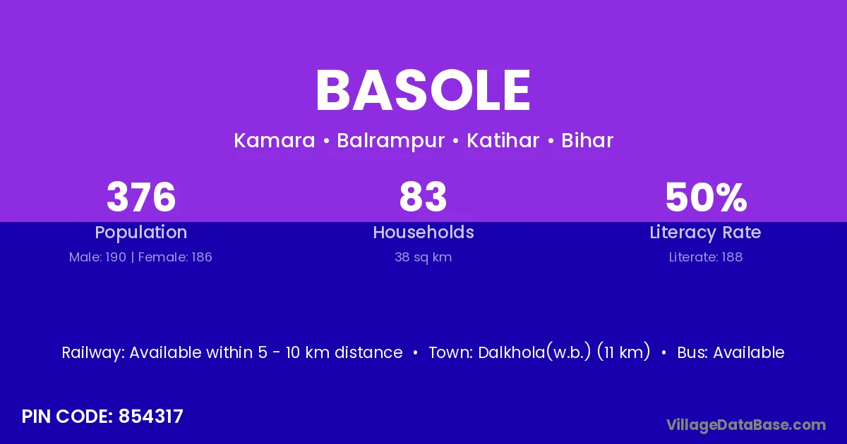 Dalkhola(w.b.) (11 km) is the nearest town to Basole village for major economic activities and is located approximately 11 km away.