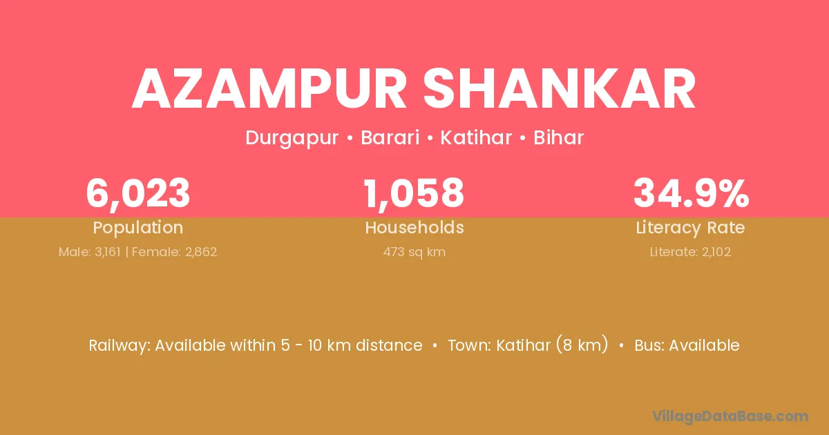 Katihar (8 km) is the nearest town to Azampur Shankar village for major economic activities and is located approximately 8 km away.