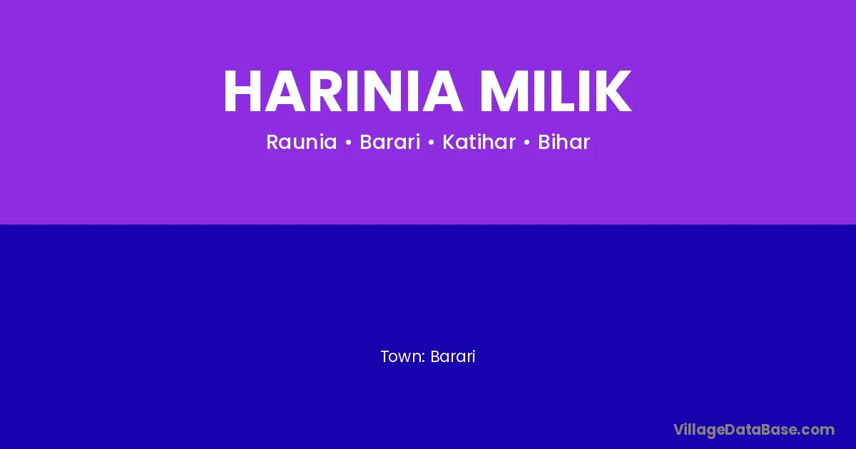 Harinia Milik village is located in the Barari Subdivision of the Katihar district in Bihar .