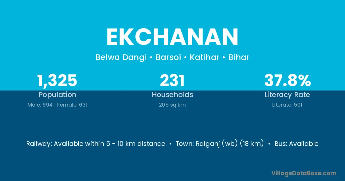 Raiganj (wb) (18 km) is the nearest town to Ekchanan village for major economic activities and is located approximately 18 km away.
