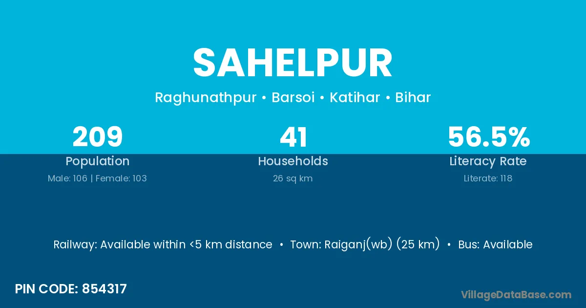 Raiganj(wb) (25 km) is the nearest town to Sahelpur village for major economic activities and is located approximately 25 km away.