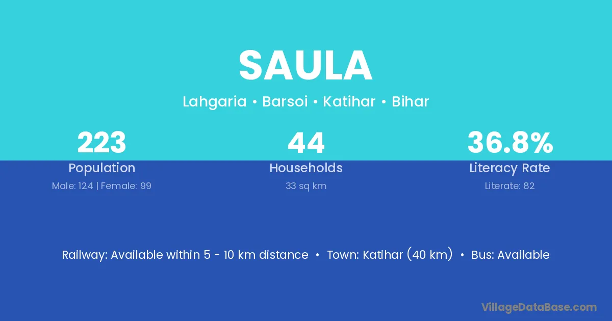 Katihar (40 km) is the nearest town to Saula village for major economic activities and is located approximately 40 km away.