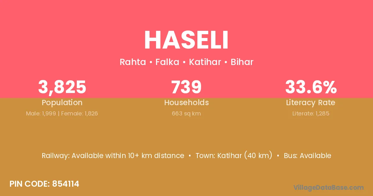 Katihar (40 km) is the nearest town to Haseli village for major economic activities and is located approximately 40 km away.
