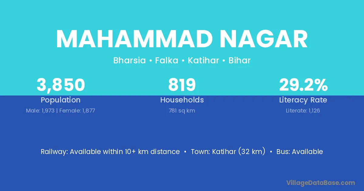 Katihar (32 km) is the nearest town to Mahammad Nagar village for major economic activities and is located approximately 32 km away.