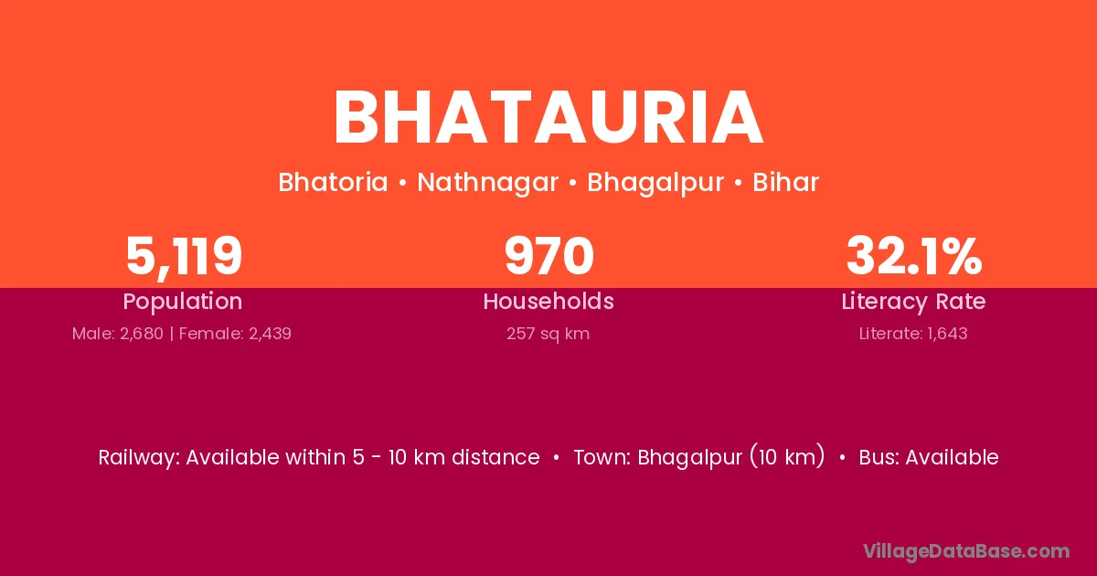 Katihar (20 km) is the nearest town to Bhatauria village for major economic activities and is located approximately 20 km away.