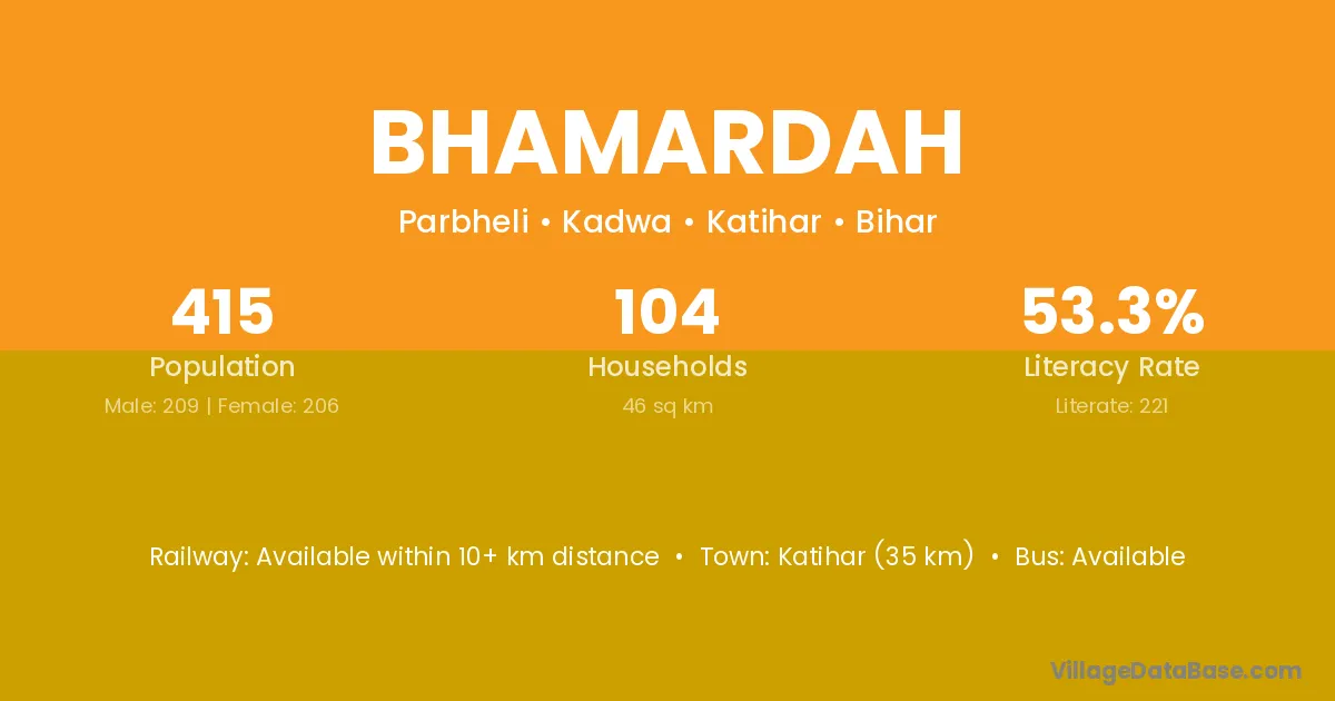 Katihar (35 km) is the nearest town to Bhamardah village for major economic activities and is located approximately 35 km away.
