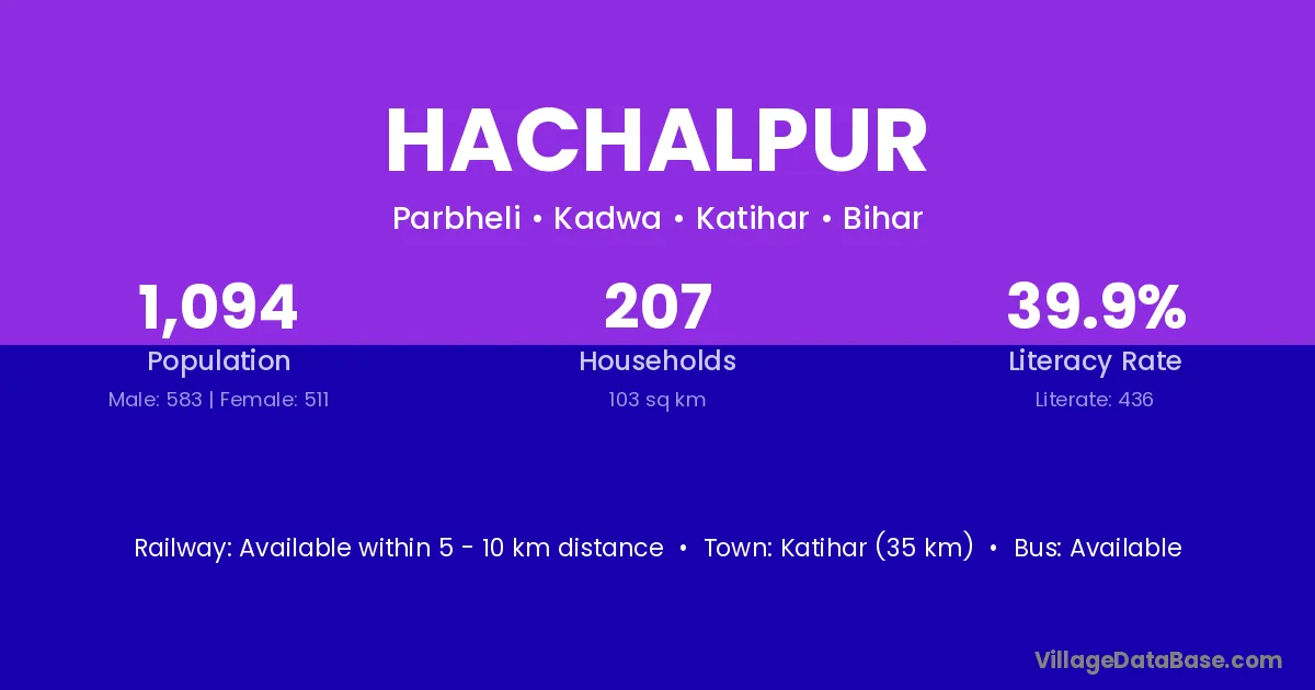 Katihar (35 km) is the nearest town to Hachalpur village for major economic activities and is located approximately 35 km away.