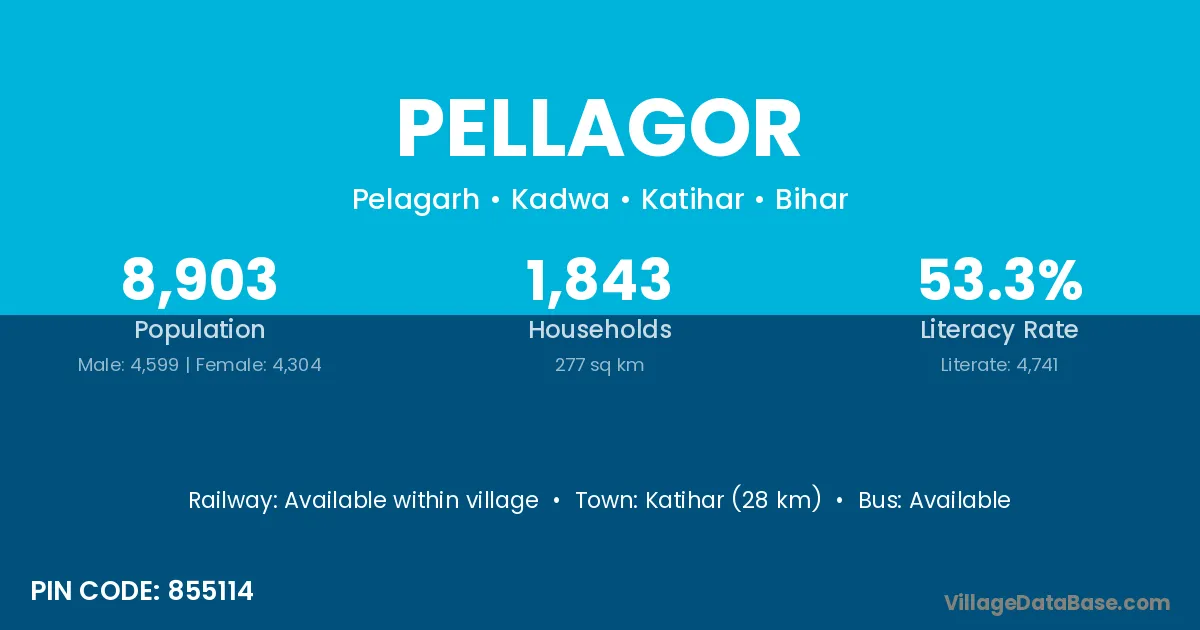 Katihar (28 km) is the nearest town to Pellagor village for major economic activities and is located approximately 28 km away.