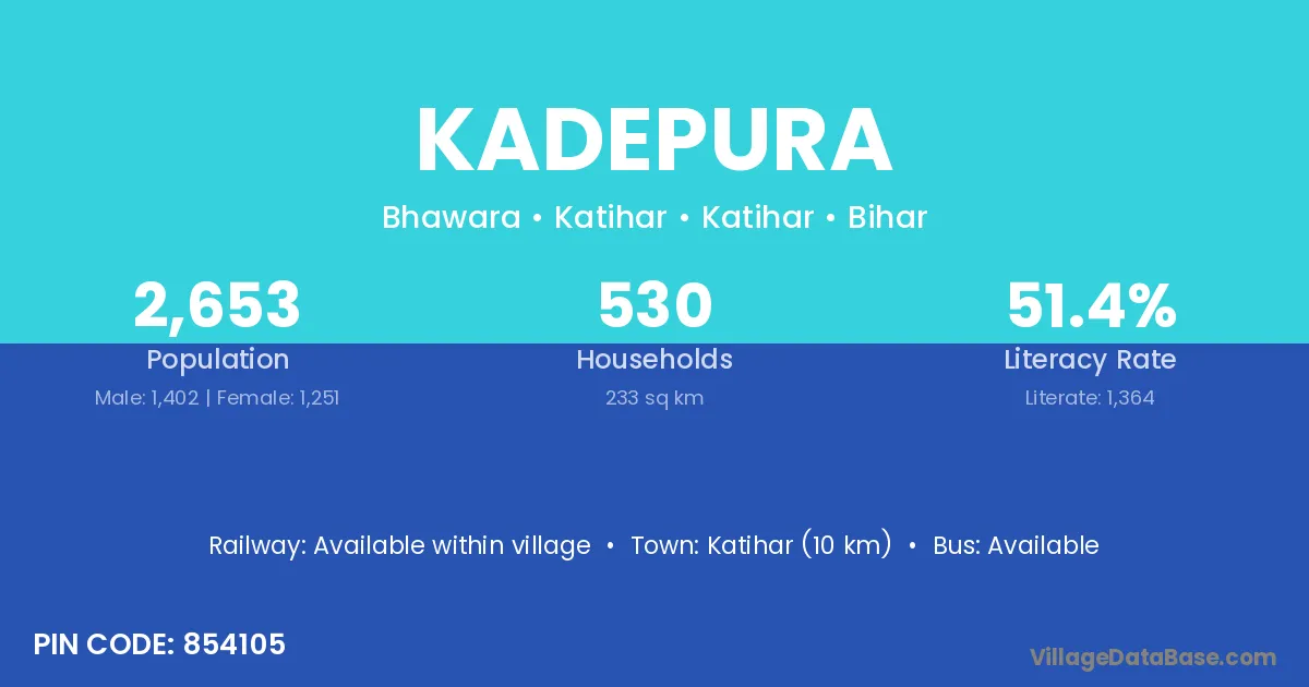 Katihar (10 km) is the nearest town to Kadepura village for major economic activities and is located approximately 10 km away.