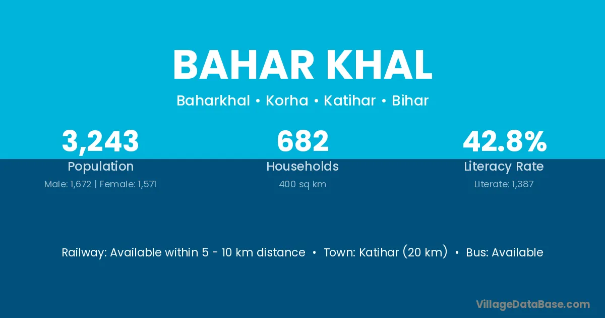 Katihar (20 km) is the nearest town to Bahar Khal village for major economic activities and is located approximately 20 km away.