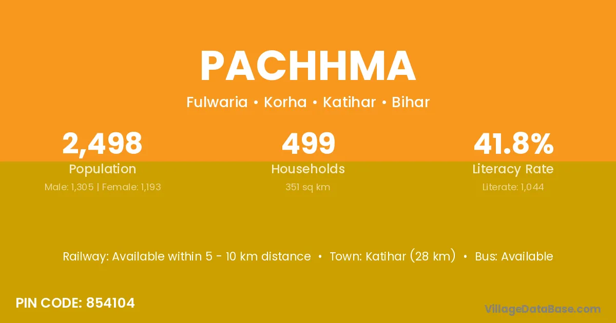 Katihar (28 km) is the nearest town to Pachhma village for major economic activities and is located approximately 28 km away.