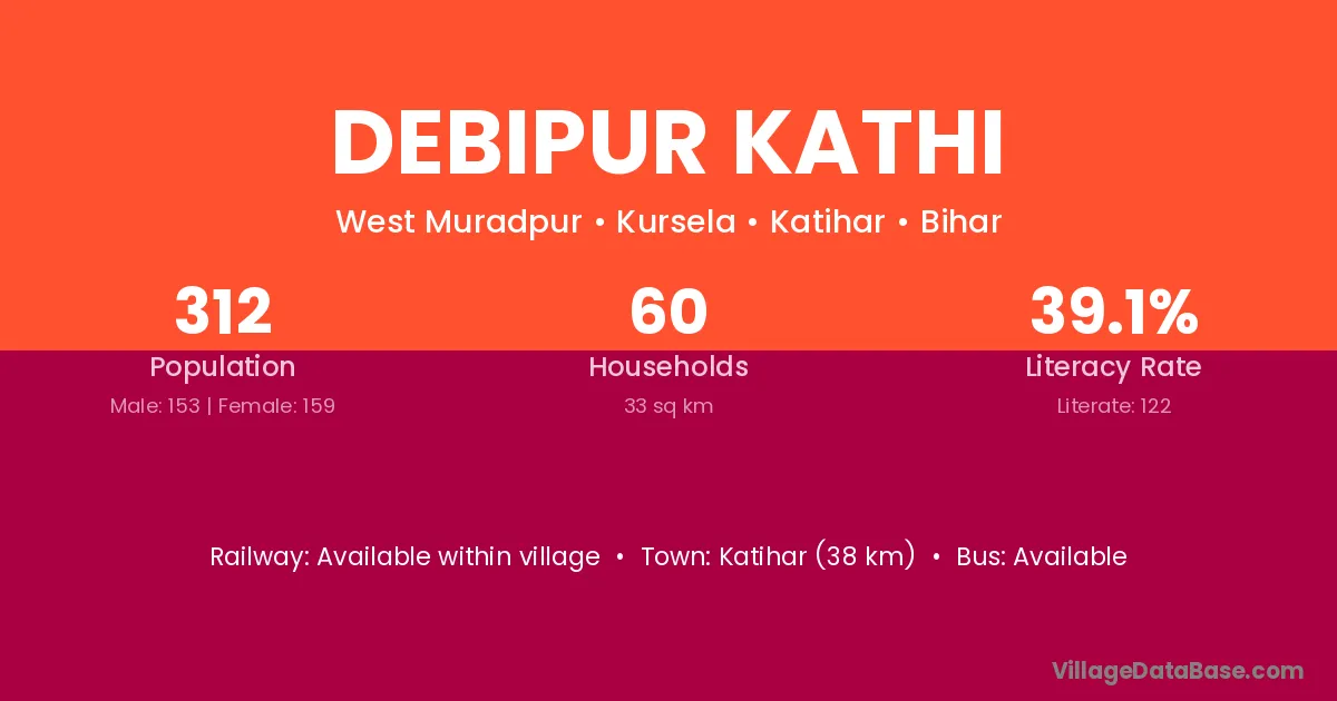 Debipur Kathi village has a total population of 312 people, of which 153 are males and 159 are females.