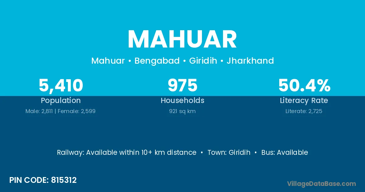 Manihari (10 km) is the nearest town to Mahuar village for major economic activities and is located approximately 10 km away.