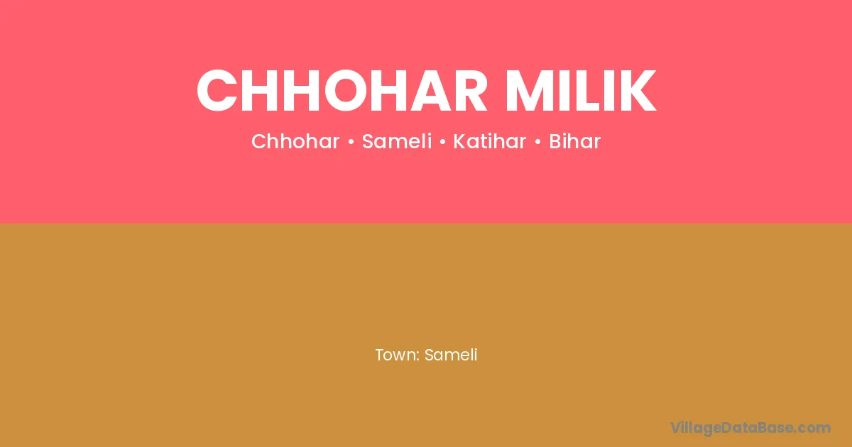 Chhohar Milik village is located in the Sameli Subdivision of the Katihar district in Bihar .