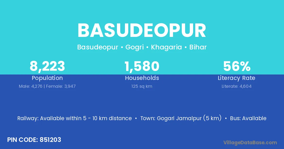 Gogari Jamalpur (5 km) is the nearest town to Basudeopur village for major economic activities and is located approximately 5 km away.