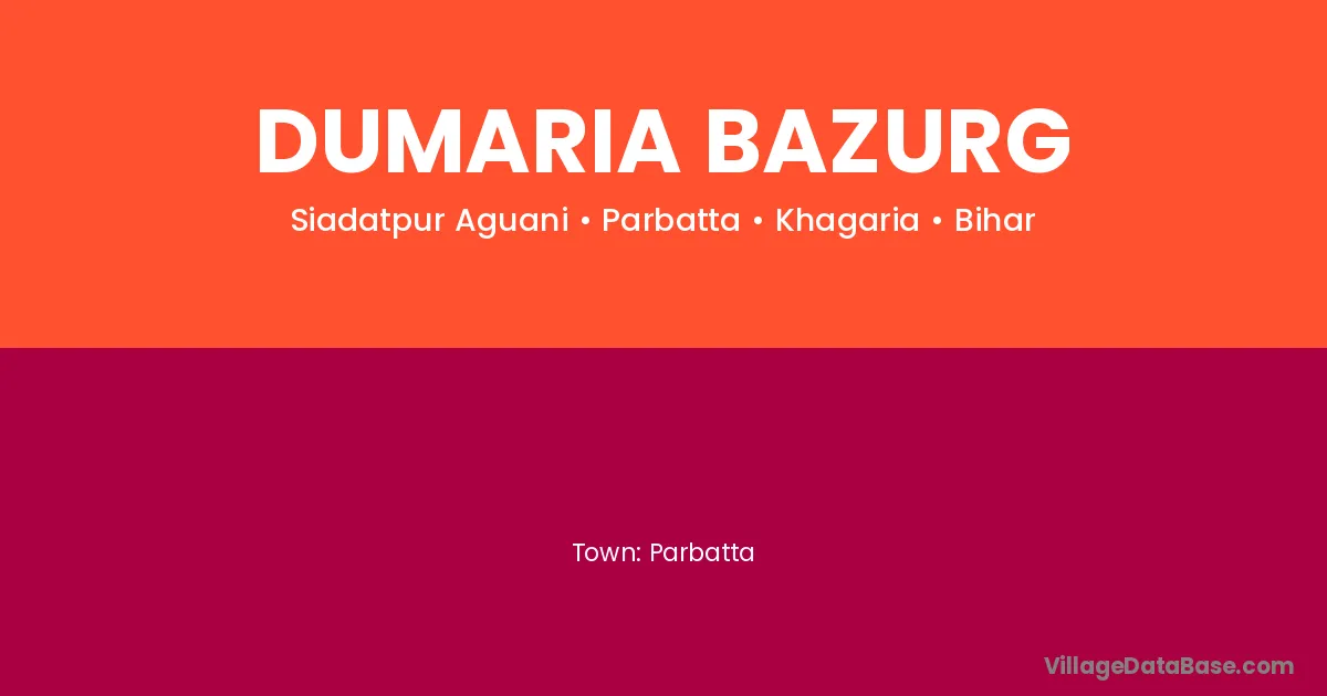 Dumaria Bazurg village is located in the Parbatta Subdivision of the Khagaria district in Bihar .
