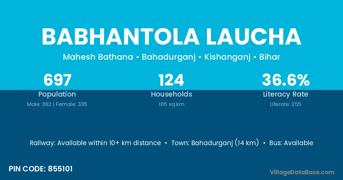 Bahadurganj (14 km) is the nearest town to Babhantola Laucha village for major economic activities and is located approximately 14 km away.